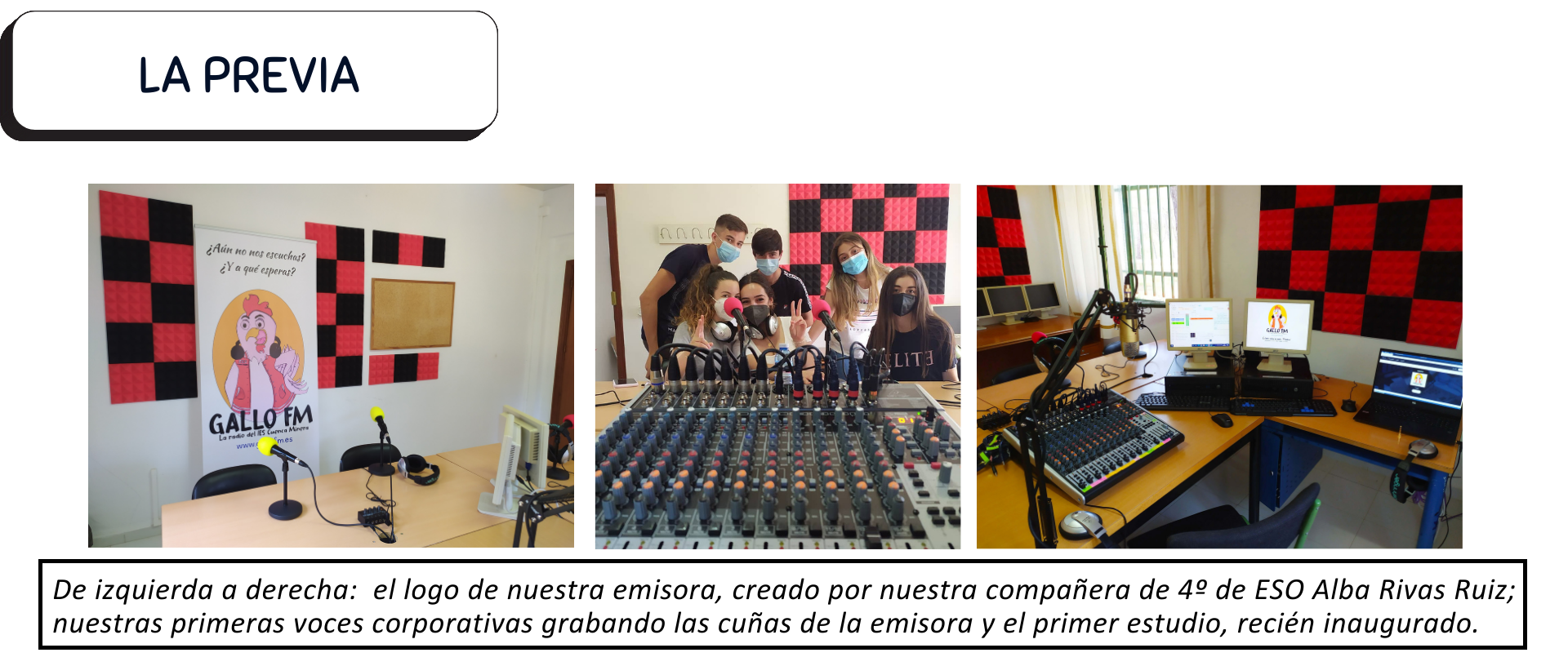 Aquí podrás disfrutar de un sinfín de imágenes y momentos de la emisora de radio escolar del IES Cuenca Minera, de Gallo FM. Aunque si quieres estar al día, te aconsejamos que nos sigas en las Redes Sociales (Instagram y Facebook).