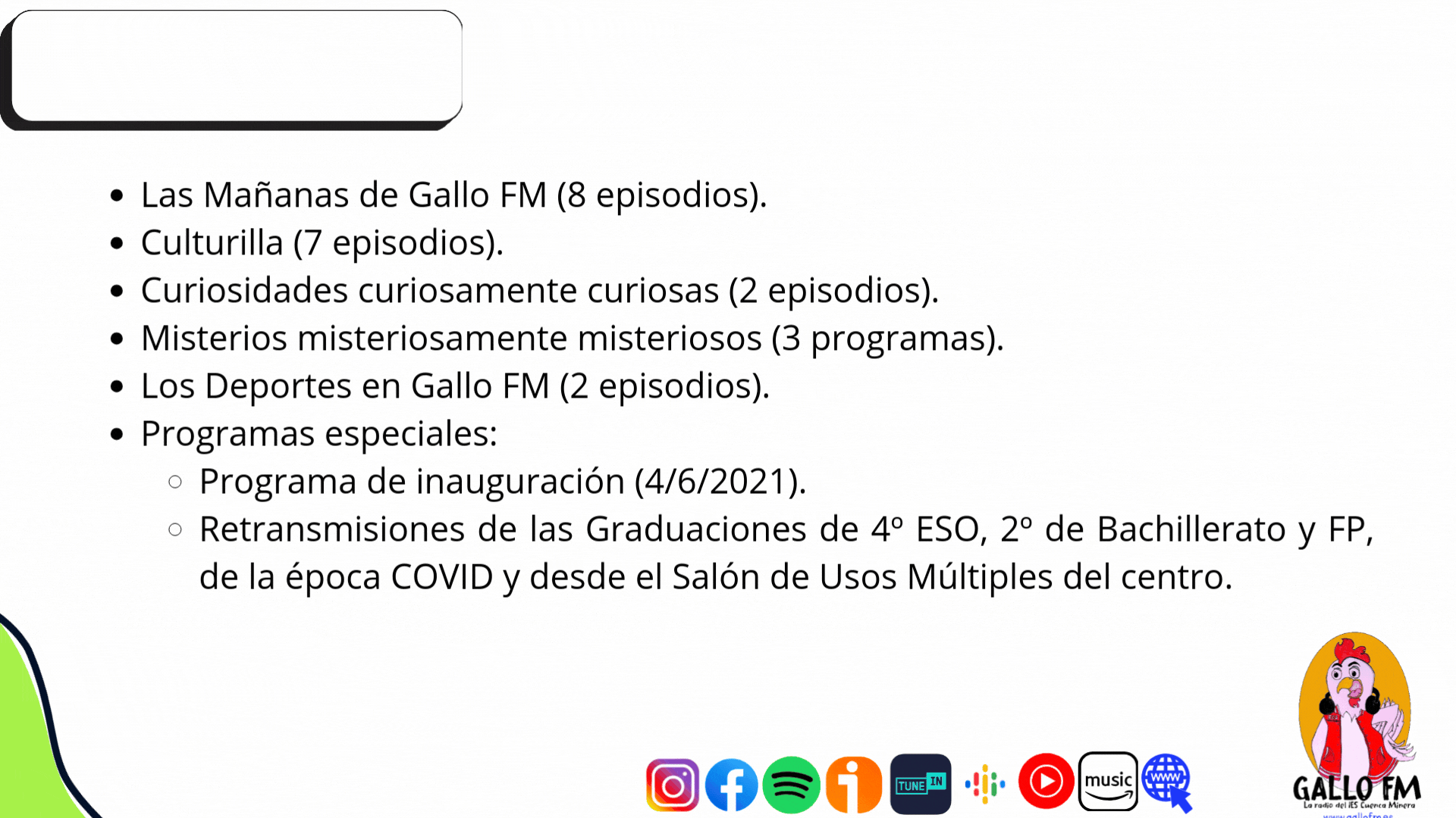 GalloFM es la emisora escolar online del I.E.S. Cuenca Minera de Minas de Riotinto. Todas las informaciones han sido elaboradas por nuestra Comunidad Escolar, y los sonidos están bajo licencia Creative Commons No Comercial -las restantes, se utilizan al amparo de lo recogido en la ley 23/2006, de 7 de julio, por la que se modifica el texto refundido de la Ley de Propiedad Intelectual, aprobado por el Real